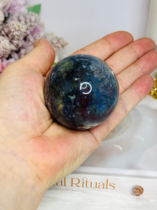 Blue & Green Moss Agate Sphere on Stand 207g